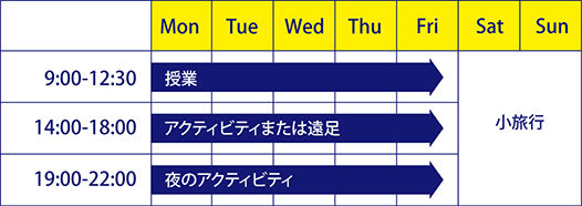 自分のやりたいことに合わせて、1週間〜4週間まで留学期間を設定することができます。ある1日の過ごし方