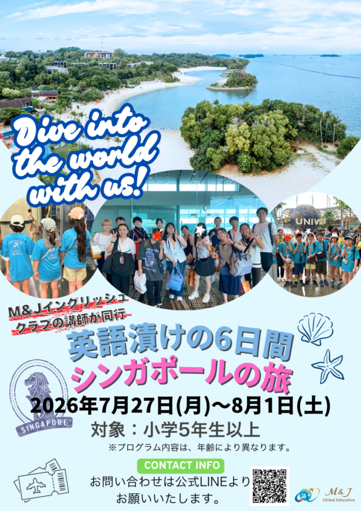 2026年3月30日(月)〜4月4日(土)に開催される小学5年生から高校生までを対象とした、シンガポール短期語学留学プログラム参加お申し込み受付中!