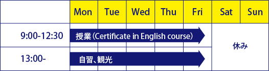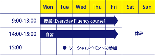 英会話:Tue、Thu(2hours/day)